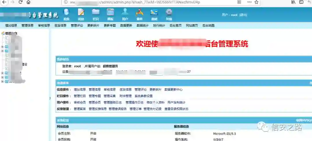 也可以得到网站的管理后台了,这个好像是帝国 CMS 的默认路径,不知道扫描器为啥没给直接爆出来。。