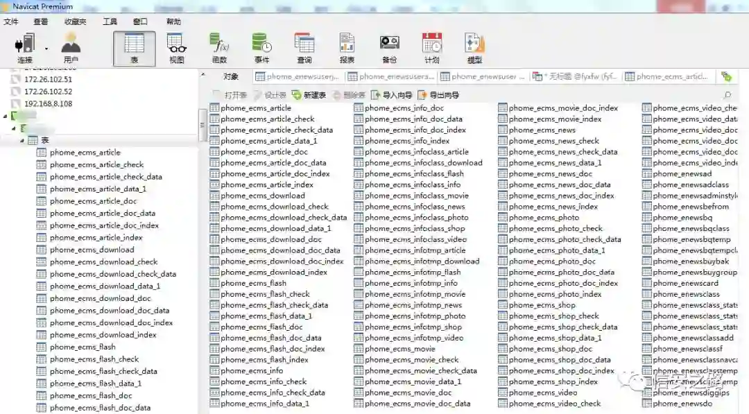 由于该 Web 服务器的 IP 开放了 3306 端口,尝试使用 Navicat 连接,运气不错,直接连上了。