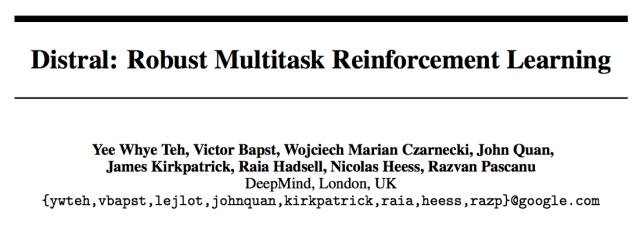 Distral:一种提取和迁移多任务强化学习中一般行为的通用框架。实验中,该算法不仅能更迅速地学习、产生更好的性能,同时还能更加稳健和鲁棒地设置超参数。我们发现 Distral 能显著地优于为多任务和迁移强化学习共享神经网络参数的标准方法。