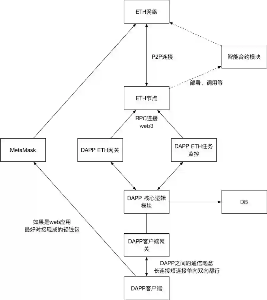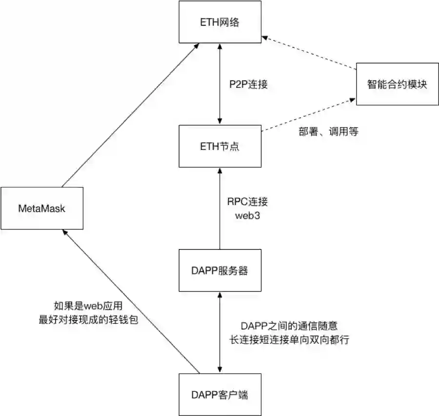 DAPP客户端,这个没啥好说的,如果是web应用,建议还要接MetaMask,这样对用户来说会安全一些。