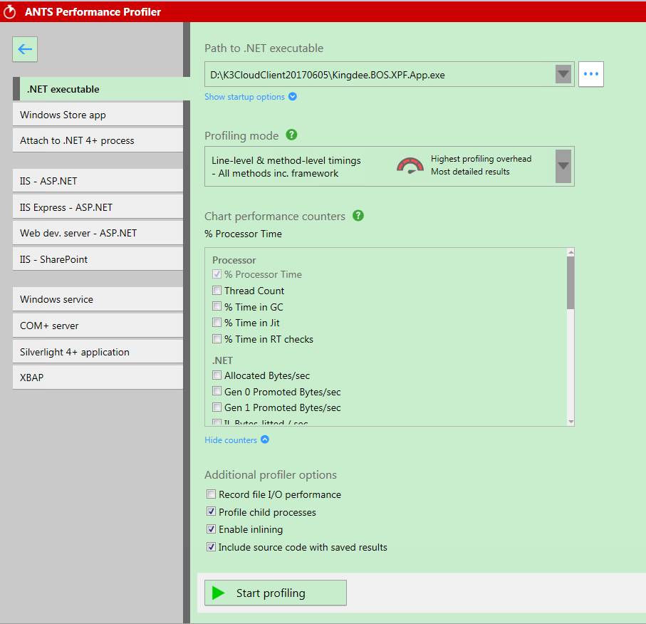 同样,我们还是先尝试本地重写。经测试批量引入101张单据,就耗时5mins左右。下一步打开Sql监控工具也未发现耗时语句。但考虑到是批量导入操作,虽然单个耗时不多,但乘以100这个基数,就明显了。下面我们就使用RedGate的Ants Performance Profiler跟踪一下。