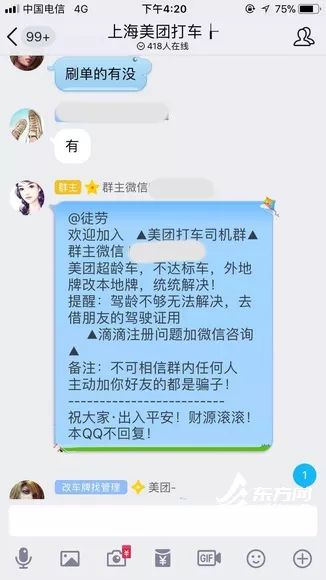 “外地牌照做网约车的不少,而且现在美团正在大量招募司机,不会查得很严。”这位从事网约车已近4年的司机还向记者道出了内行所知的“门道”:“一般外地车辆改一个沪牌需要400到600元,我已经推荐几个朋友试过了,没什么问题。”他还向记者展示了“美团打车”的一个上海司机QQ群,群内写明:“美团超龄车,不达标车,外地牌改本地牌,统统解决。驾龄不够三年的,统统搞定。”