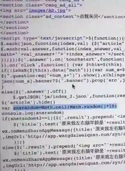 而且有网友扒出了这款测试游戏的程序代码进行研究,发现其出现的大脑年龄答案都是随机的。也就是说,你使用完全一样的答案去重新回答测试题,很大可能会出现与第一次作答时完全不一样的左右脑年龄数字。