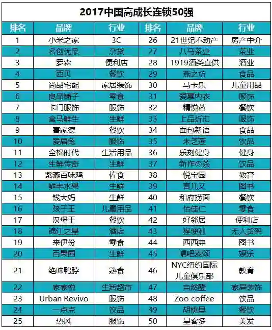 2017年是中国实体连锁企业发展转型的重要一年,经历电商冲击和O2O洗礼之后,在消费升级与新零售双重驱动下,实体企业与互联网结合的速度超乎了互联网界的想象。这一年不仅诞生了一批从线上落地线下的连锁新秀,更有一批10年以上的老店革新换面,重新吸引消费者的眼球。11月13日,开店邦第十届“中国高成长连锁50强”榜单正式公布。与往届所不同的是,这一届诞生的新面孔之多,出乎意料又在情理之中。