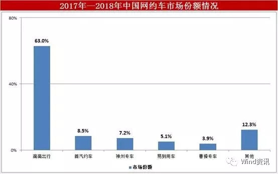 而如果从整个网约车市场情况来看,2017年-2018年期间,滴滴出行份额占比为63.0%。