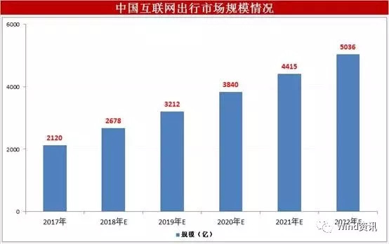 市场规模方面,2017年中国互联网出行市场规模达2120亿元,业内预计未来五年市场规模将超5000亿元。