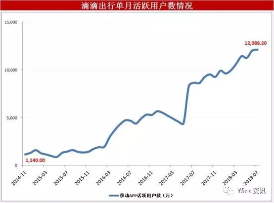 另外,截至2018年7月份,滴滴出行APP单月活跃用户数正式突破1.2亿人次。