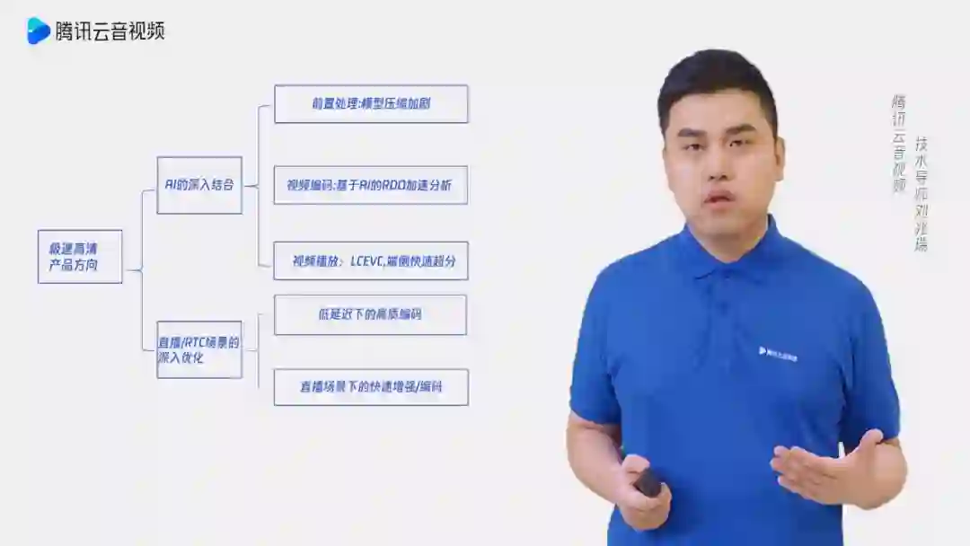 对于腾讯明眸来说,极速高清后续发展主要两个主轴,一方面是与 AI 能力的进一步深入结合,在前处理阶段利用 AI 进一步处理视频画质来辅助压缩,在编码器内部,利用 AI 的能力对 RDO 分析预测加速,在播放端,致力于 LCEVC 的支持,以及端测的超分和画质提升。另一方面是针对直播场景的深入优化,目前很多编码工具的复杂度较高,对于直播场景很难保证实时, 对于这些编码工具进一步优化与加速,更好的应用于直播场景。