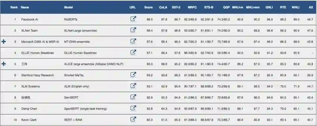 BERT 自诞生以来就展现出了卓越的性能,GLUE 排行榜上前几名的模型一度也大多使用 BERT。然而,XLNet 的横空出世,打破了 BERT 的纪录。不过,不久之后,剧情再次出现反转,Facebook 创建的改进版 BERT——RoBERTa,登上了 GLUE 排行榜榜首。