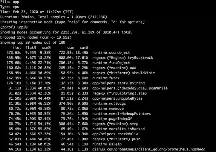 我们决定在服务上运行一些性能分析,并检查是什么导致 CPU 的高消耗,看看是否可以做些优化工作。