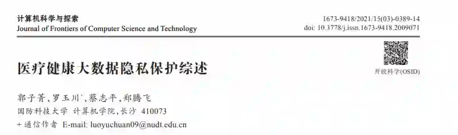 后台回复“医疗隐私” 就可以获取《医疗健康大数据隐私保护综述》专知下载链接