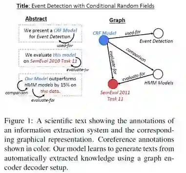本文关注如何从信息抽取结果(特别是知识图谱)出发,生成连贯的多句文本。作者表示图谱化的知识表示在计算中普遍存在,但由于其非层次,长距离依赖,结构多样等特性,使得基于图谱的文本生成成为一个巨大的挑战。