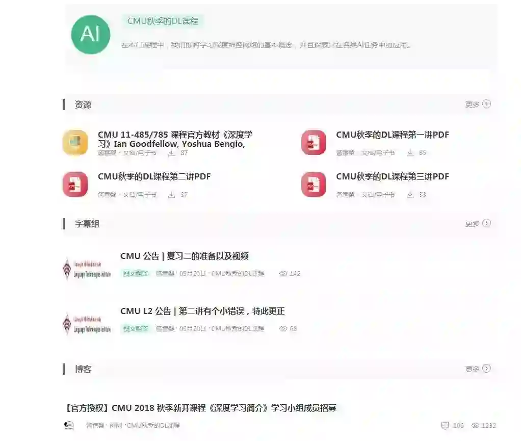 CMU 深度学习小组在 AI 研习社已经上线一段时间了,广受各大社友的喜爱。电脑端点击网址:http://ai.yanxishe.com/page/groupDetail/18