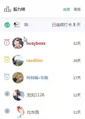 我们新增【毅力榜】,为坚持不懈的你加油呐喊: