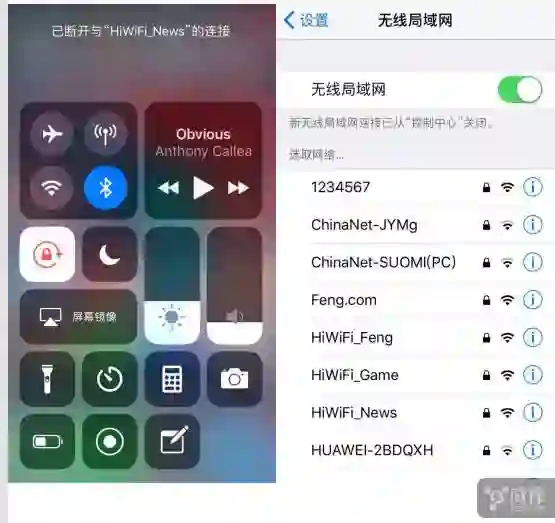 可是在 iOS 11 中,苹果改变了对控制中心关闭 Wi-Fi 或蓝牙开关的定义,在控制中心关闭 Wi-Fi 或蓝牙不再是我们以为的关闭了 Wi-Fi 或蓝牙了。