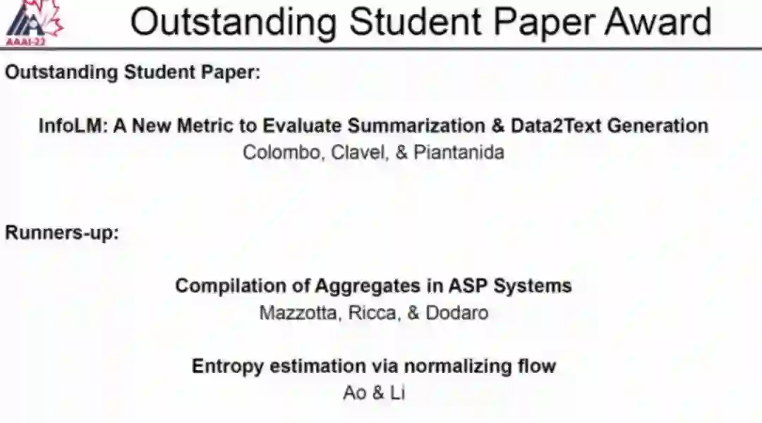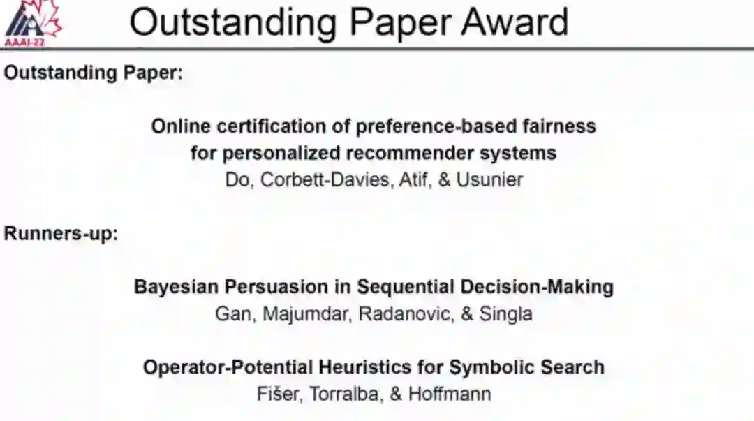 第 36 届 AAAI 人工智能会议已于 2 月 22 日在线上召开。目前,大会公布了今年的杰出论文奖(1 篇)和提名奖(2 篇),其中来自巴黎第九大学、Meta AI 等机构的研究者凭借推荐系统赢得了 AAAI 2022 杰出论文奖。另外,中科院自动化所博弈学习研究组凭借其研发的轻量型德州扑克 AI 程序 AlphaHoldem 获得了 Distinguished 论文奖(共 6 篇)。