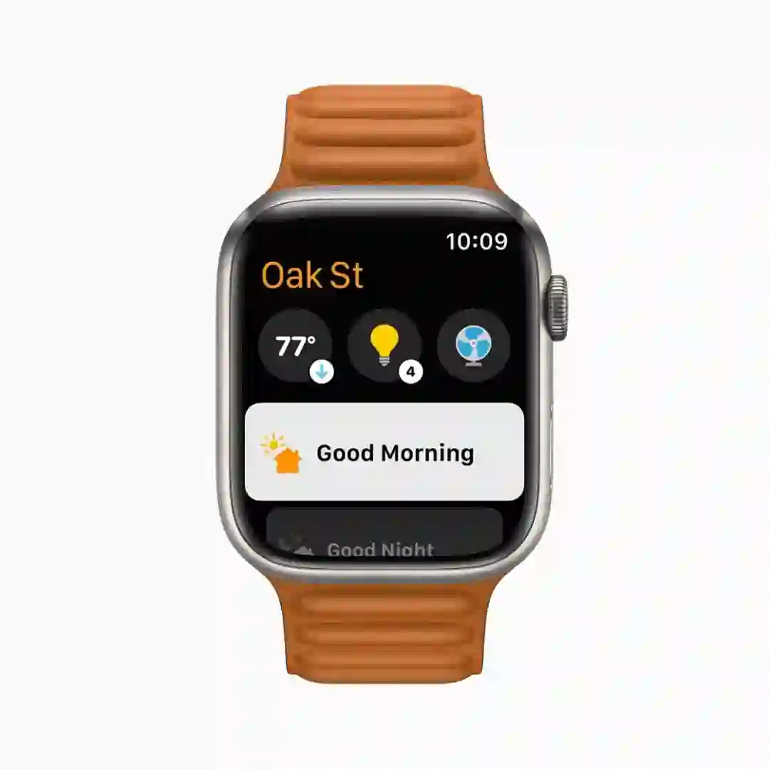 重新设计的家庭 app 能够让用户方便地访问特定时刻可能需要的配件和场景,也有控制单独房间配件的能力。拥有接入 HomeKit 的摄像头的 Apple Watch 用户可以直接在手腕上查看门口的访客。Apple Watch 用户还可以轻点广播功能,通过 HomePod mini 快速地向整个家中或单独的房间传话。
