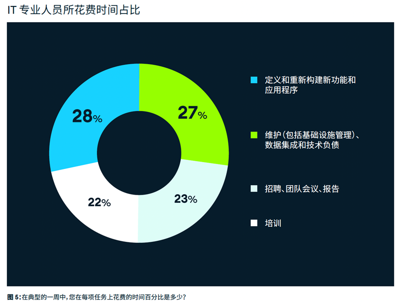 近日,MongoDB 发布了《2022 MongoDB 数据与创新报告》,该调查报告是一项针对亚太地区 2,000 余名(包括中国 400 余名)开发者、IT 决策者等专业技术人士的详尽调研。调查报告显示,高达 92% 的受访者认为定期构建新的应用程序和功能是企业获得长期成功的关键,但许多机构认为能真正用于创新的时间非常有限,IT 专业人员在现有数据、应用程序和基础设施维护方面所花费的时间(27%)与用于构建全新的增值功能或应用程序的时间(28%)基本相当。