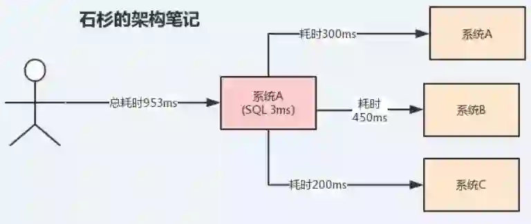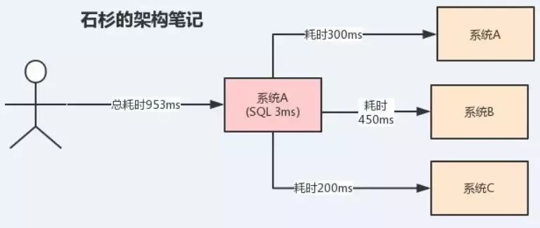 假设自己本地写库要3ms,调用BCD三个系统分别要300ms、450ms、200ms。