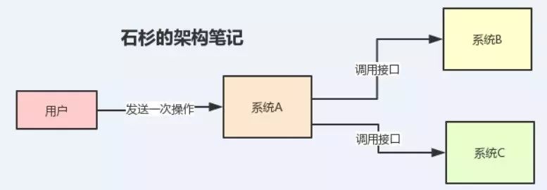 我们通过实际案例说明:假设A系统接收一个请求,需要在自己本地写库执行SQL,然后需要调用BCD三个系统的接口。
