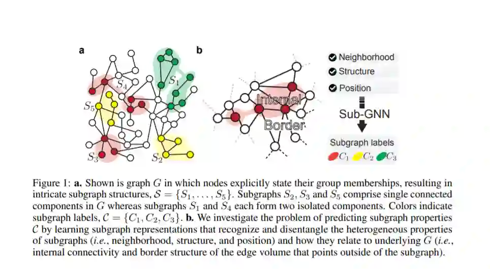 图的深度学习方法在许多节点级和图级预测任务中都取得了显著的效果。然而,尽管这些方法大量涌现并取得了成功,但主流的图神经网络(GNNs)忽略了子图,使得子图预测任务在许多有影响的应用中难以处理。此外,子图预测任务提出了几个独特的挑战,因为子图可以有非平凡的内部拓扑,但也携带了相对于其存在的底层图的位置和外部连接信息的概念。在这里,我们介绍了子GNN,一种学习解纠缠子图表示的子图神经网络。特别是,我们提出了一种新的子图路由机制,它在子图的组件和随机抽样的基础图锚块之间传播神经信息,从而产生高度精确的子图表示。SUB-GNN指定了三个通道,每个通道都设计用于捕获子图结构的不同方面,我们提供了经验证据证明这些通道编码了它们预期的属性。我们设计了一系列新的合成的和真实的子图数据集。对8个数据集进行子图分类的实证结果表明,子GNN实现了可观的性能提升,比最强的baseline方法(包括节点级和图级gnn)的性能高出12.4%。当子图具有复杂的拓扑结构,甚至包含多个断开连接的组件时,子GNN在具有挑战性的生物医学数据集上表现得非常好。
