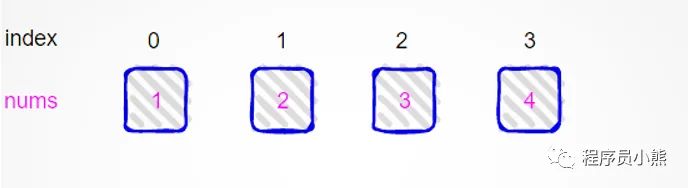 以 nums = [1,2,3,4]为例,如下图示。