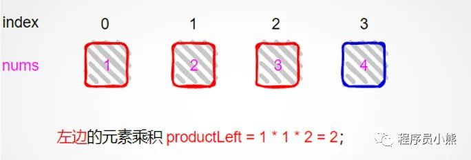 先求下标为 2 左侧元素的乘积;