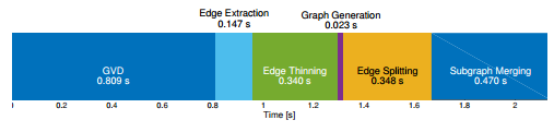 图 9 平台实验的执行时间信息,如背景图所示。地图为20米×22米,体素分辨率为0.07米。在MAV机载计算机上,从ESDF生成稀疏图的总时间为2.13秒。