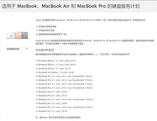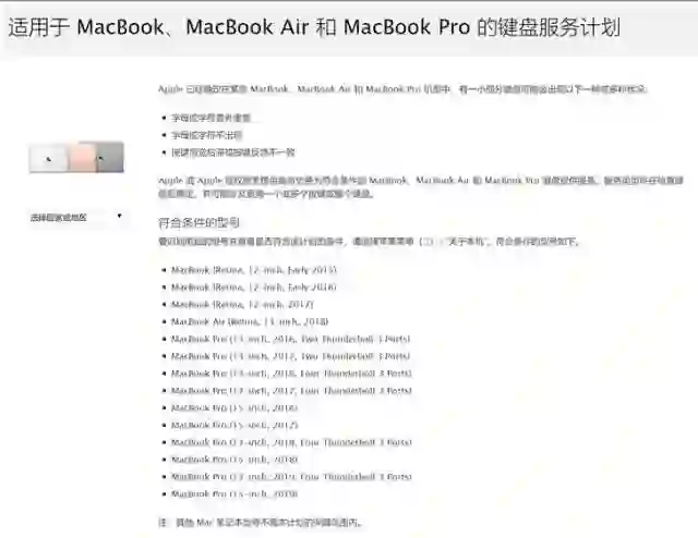 5月22日苹果更新MBP产品线后,同时也更新了Mac book的维修计划。 Apple 或 Apple 授权服务提供商将免费为符合条件的 MacBook、MacBook Air 和 MacBook Pro 键盘提供服务。服务类型将在检查键盘后确定,并可能涉及更换一个或多个按键或整个键盘。