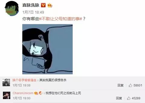 微博博主“洗脉洗脉”曾发起过一个话题:“你有什么不敢让父母知道的事情?”