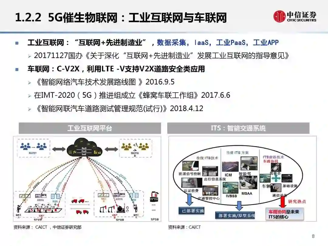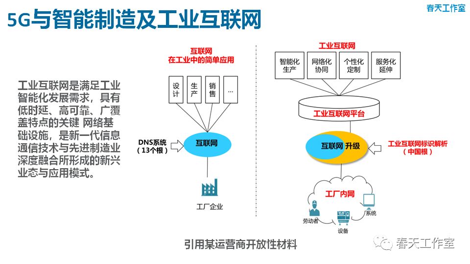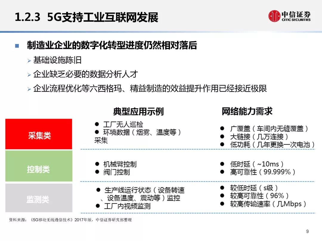2016年11月3日,工信部发布《信息化和工业化融合发展规划(2016-2020)》,指出要加快5G在工业互联网之中的应用:推动工业互联网建设。提升宽带网络能力,积极部署全光网,推进5G规模试验网建设和试商用进程。以下一代互联网示范城市、LTEv6工程为抓手,推动IPv6在物联网、移动互联网中的应用。持续优化互联网骨干网,实现国内骨干直联点与交换中心协同发展,扩大内容分发网络覆盖范围,提升内容分发能力。推动工业互联网创新发展,开展工业互联网技术试验验证、工业互联网标识解析系统建设、工业互联网IPv6应用部署、工业互联网管理支撑平台等工作。加快推进工业以太网、短距离无线通信、4G/5G等新一代工业互联网设备、技术研发与产业化。研究制定工业互联网网络安全防护标准,加强工业互联网网络侧安全技术手段建设,建立健全工业互联网网络安全保障体系。