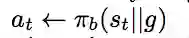 我们首先要采样M个完整的序列。对于任意一个序列,我们首先采样它的初始状态和目标状态,因为此时每个序列的目标是不同的,我们要根据不同的目标来选择动作,所以动作的采样同时基于当前的状态s和目标g:
