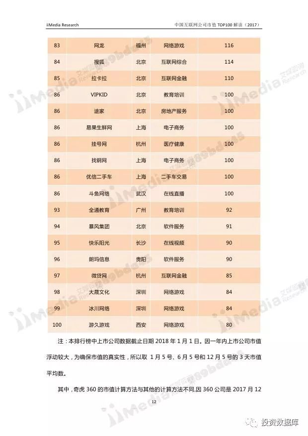 在中国互联网企业TOP100排行榜中,排名前十分别为:腾讯控股、阿里巴巴、百度、蚂蚁金服、小米科技、京东、奇虎360、滴滴出行、网易、美团-大众点评(新美大)。其中,腾讯控股、阿里巴巴、百度、蚂蚁金服连续两年位居前四,小米科技超越京东,与蚂蚁金服并排第四名。