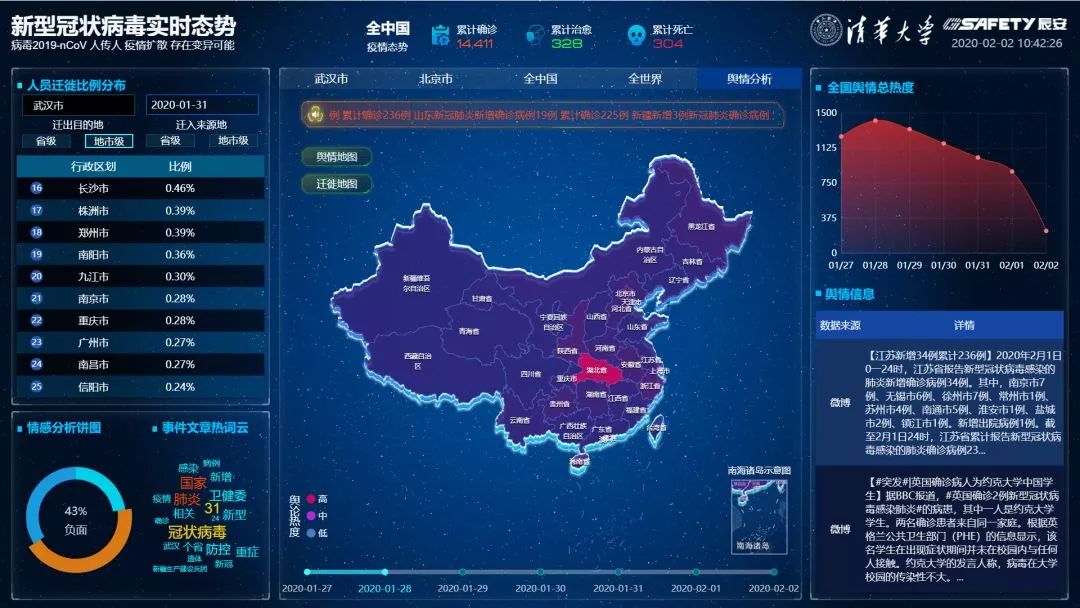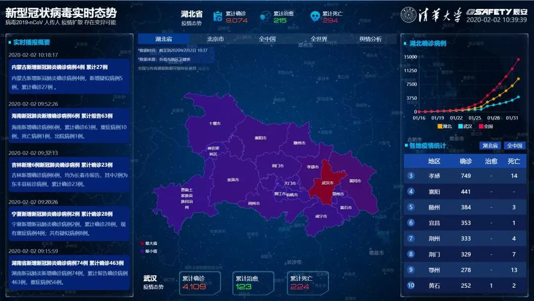 面对疫情,清华大学公共安全研究院和清数大数据产业联盟单位理事会员北京辰安科技股份有限公司快速搭建了疫情实时态势感知与分析系统,对区域疫情数据进行实时动态监测、搜集、分析和可视化,服务各级政府疫情应急的资源调度、态势研判和决策指挥。