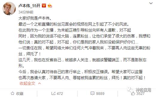 五五为自己在粉丝见面会上的错误行为向公众道歉,没有提及开挂事件。
