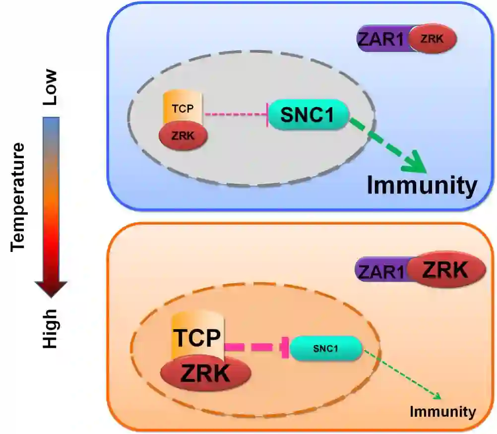 ZRK-TCP介导温度调控免疫反应的分子模型