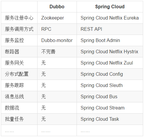 所以 Dubbo 专注于服务治理,Spring Cloud 关注于微服务架构生态。