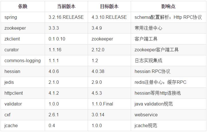 因此阿里恢复更新的第一步就是适配所依赖的各组件版本,让 Dubbo 所依赖的基础环境不要太落伍,另外也 Fixed 掉了一些严重的 Bug。