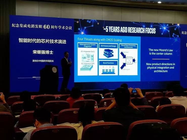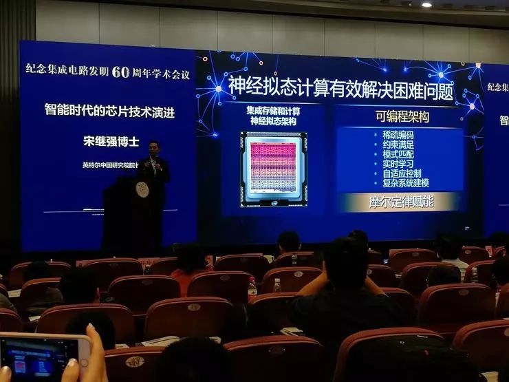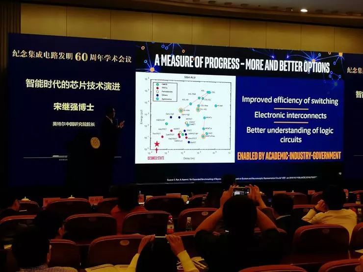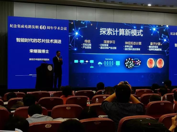 其中,Intel中国研究院院长宋继强题为《智能时代的芯片技术演进》的演讲回顾并分析了摩尔定律在60年里的演进,并分析了神经拟态芯片和量子芯片等未来发展方向。雷锋网对演讲内容做了不改动原意的编辑、整理和精简。