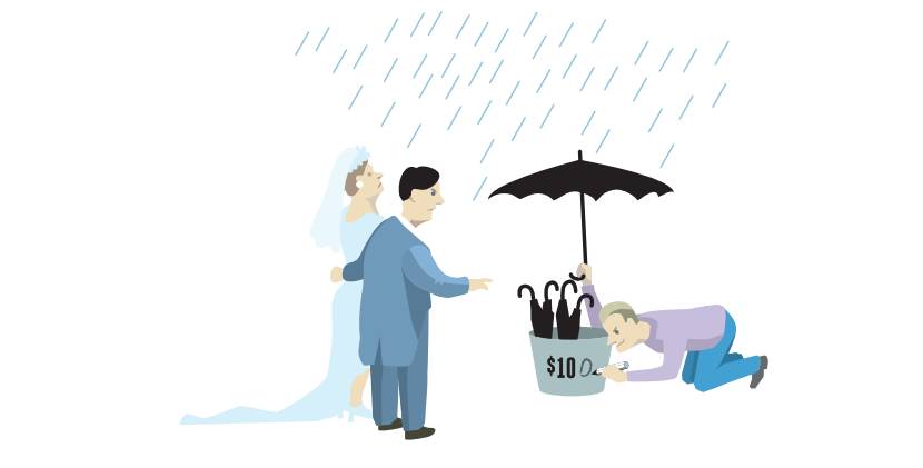 图2:不期而遇的降雨增加了雨伞的需求,但是借机涨价的销售者却会被人鄙视。