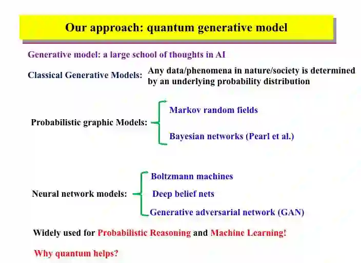 所有的这些模型原则上是量子模型的特例,为什么会走向量子模型,因为量子模型会让基于生成模型的机器学习算法更加强大,在一些情况下达到指数加速。
