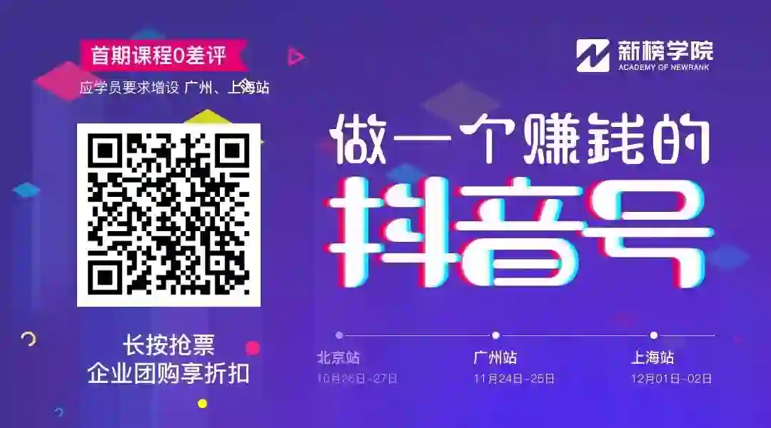 2天的课程涵盖运营、制作等多个维度,让我们用一个周末,掌握领先行业的抖音玩法!企业多人报名享更多折扣,席位有限,先到先得,长按如下二维码报名吧!