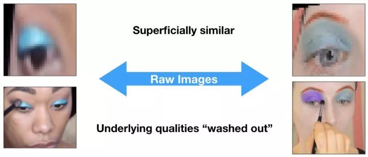 原始图像并不是很适合计算视觉相似性或者进行分类任务。因为它们包含的很多相似性都是表面上的(比如画的妆很相似,由于强光才造成肤色看起来不同)。