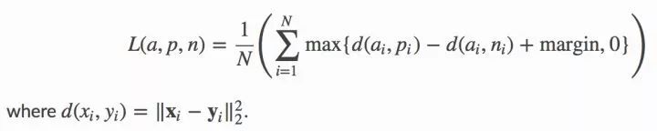 当然,这里所以靠的正是前面所说的triplet 损失函数,其公式如下所示: