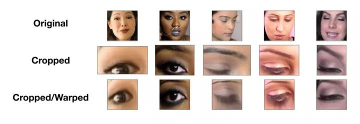 剪裁照片中的眼部部位,将其「扭曲」处理,确保它们对齐和一致。这步操作能让他们专注于让「嵌套」不受人物头部姿势和倾斜角度的影响。