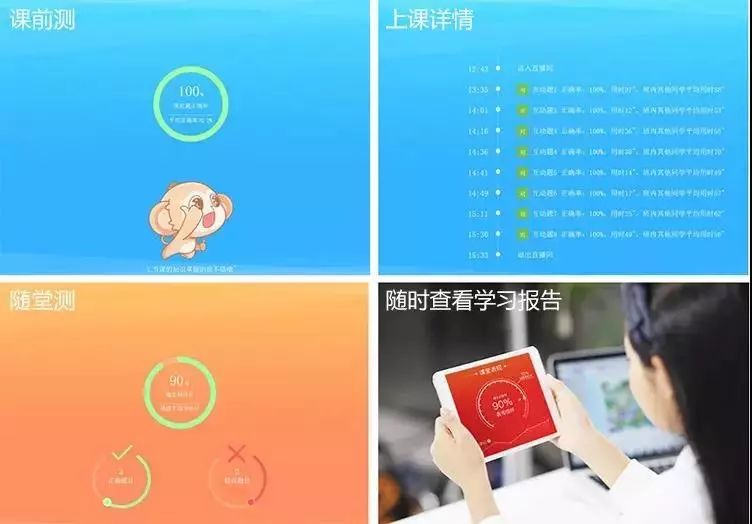 还绘制专注度曲线和随堂测,并生成孩子专属学习报告,老师们根据指标和数据来调整自己的授课状态及节奏,保证学习效果落地。家长对孩子的学习也能一目了然。