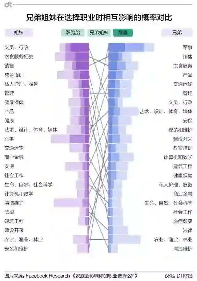 为了分析兄弟姐妹的职业,Facebook收集了237万份数据。数据对象都是美国的同性别兄弟姐妹,并且他们在个人资料中填写了职业信息。