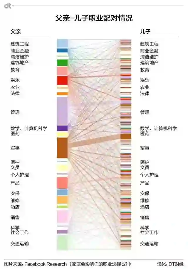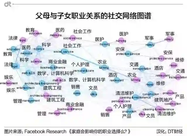 当你走出校门迈向职场,择业时也许很难完全避免来自父母的影响。而这种影响甚至还不是一时,而是打你一出生就已经开始了。“龙生龙凤生凤”,父母的职业在多大程度上会影响子女的职业呢?来自Facebook的两位数据科学家通过分析Facebook社交平台上的数百万条职业和人际关系数据,为我们揭示了父母和子女的职业代际传承关系的“真相”。