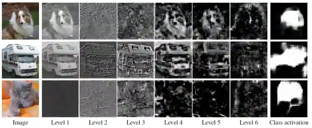 DRN-C-26中不同层级的特征map的可视化(显示了每层的最高平均激活值)