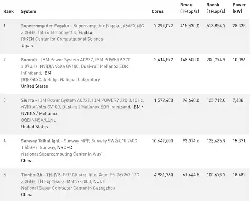 现世界排名前5的超级计算机